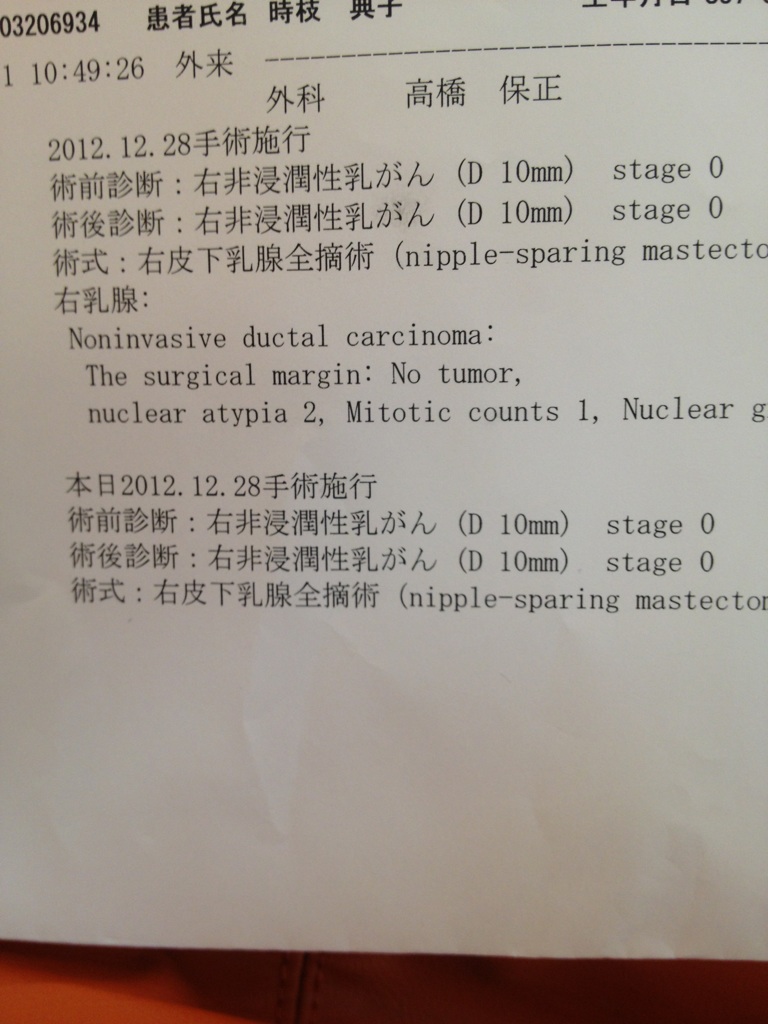 ガン細胞は全て取り切れていて、乳頭への侵入はありませんでした^o^