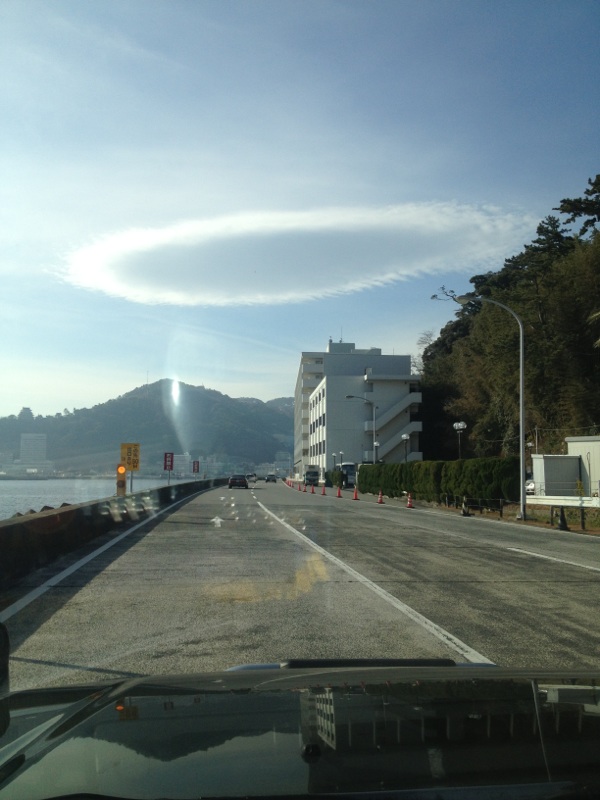 来る途中のあたりで空の雲がドーナツになっているのを発見!