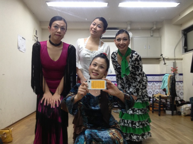 楽しかった☆*:.。. o(≧▽≦)o .。.:*☆ 今日は寒くてリハの時四人共足が動かなーい。 不安満載のリハでしたが、本番はえらい楽しかった^o^ みよちゃんは可愛いグアヒーラだし、あやちゃんのソレアはどっしりと、そしてそして、チビちゃん!高野美智子ーー! 大好きだぁ~。 イスマエルのギターはため息。素敵なファルセータをありがとう^_^ 二つ目エスコビージャで音を見失い仕切り直し。ゴメンなさい! 誰も気付いていないよ! とチビちゃんに慰められたら、気付いていたんですねぇ。 もちろん、フラメンコやってる人にはバレバレだったかもしれませんが、指摘したのはフラメンコやってない人。 お~。 本番の最中隣に座るローラに、あれ?今典子仕切り直した? と聞いたらしい。ローラは気付かず…。 四年ぶりに来てくれて鋭い指摘。恐るべし! フラメンコ好きになってくれて、 ありがとう^_^ セルヒオのアレグリアは後ろでパルマ打ちながら楽しくて楽しくて☆*:.。. o(≧▽≦)o .。.:*☆ 最高のLIVEでした! 来て下さった皆さん! 本当にありがとうございました^o^ また楽しいLIVEをお届けしたいと思います^_^ |