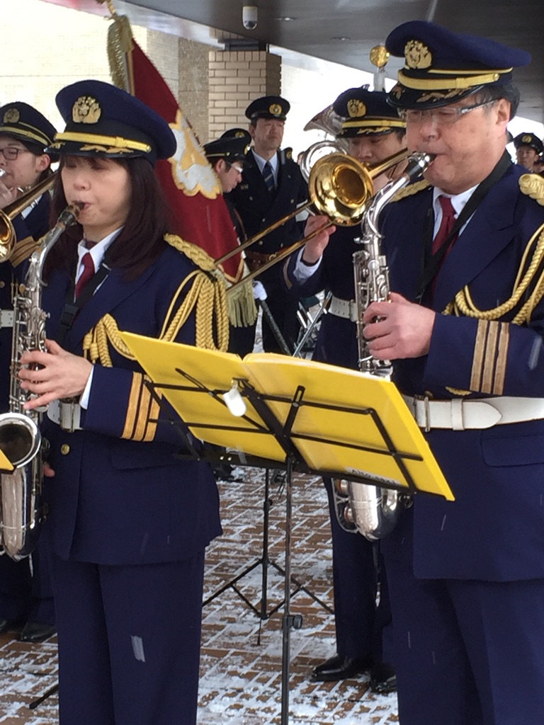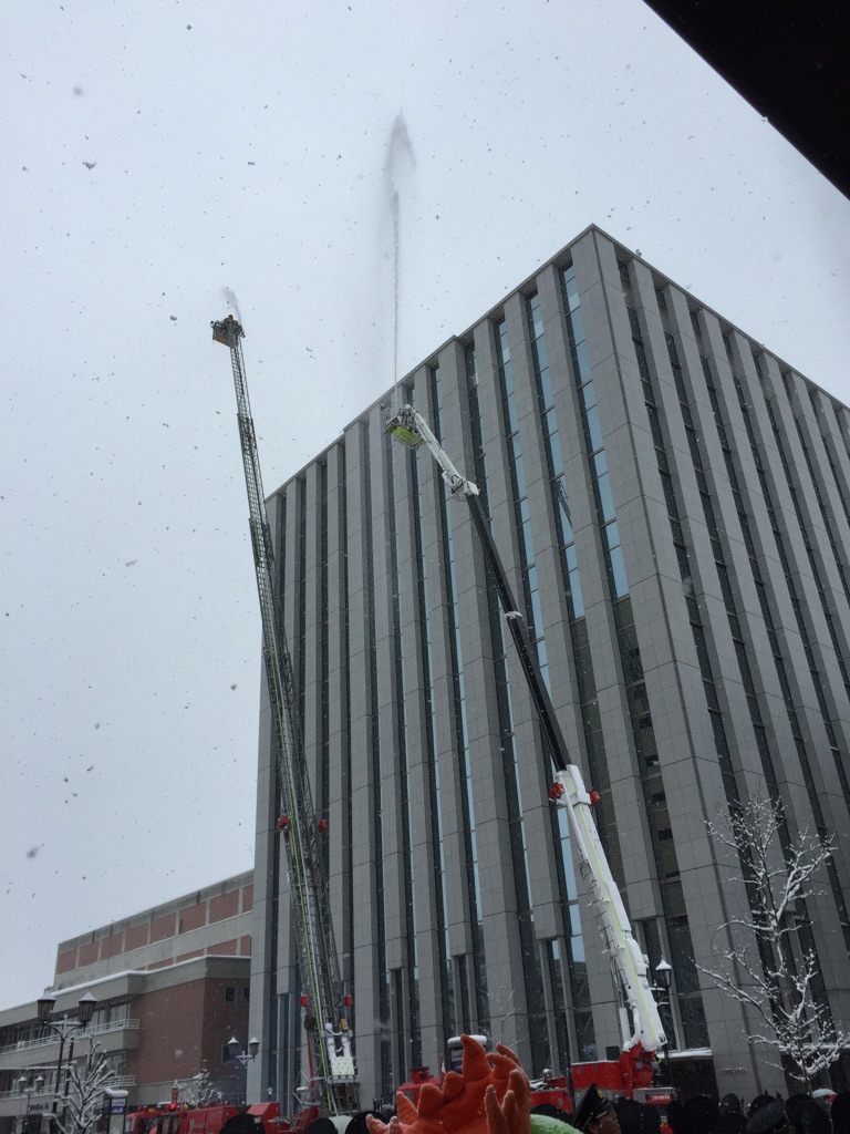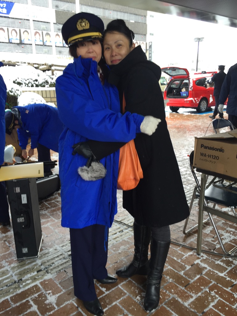 湯殿山神社神幸会のお神輿仲間西村夫妻が消防音楽隊。奥さんのノリピーとは三社祭にも盛岡にも何処にでも一緒に担ぎに行く! 山小屋LIVEのあとも直会で演奏してくれます。いつもはエレクトーン奏者なのに今日はサックス!新鮮でした。 そしてレスキュー隊の若者たちが市役所の10階から降下。ドキドキしちゃった。雪だし寒いしそして注目されて緊張する?見学の子供が、大きくなったらあれしたい!と叫んでましたねー。そのまま大きくなってね^_^ レスキューに友人二人居ますが、さすがに彼らはもうお年頃なので見守り隊でしたねー^_^と言っても大雪にもかかわらず沢山の人出で見つけられなかったのだけどσ(^_^;) 最後は放水でしたが風向きがちょうどこちらに変わってしまい雪プラス水まで降ってきました。あ~寒かった!けど楽しかった! で、今夜は神幸会総会です!新幹線大雪で止まって居ます!明日帰れるか? |