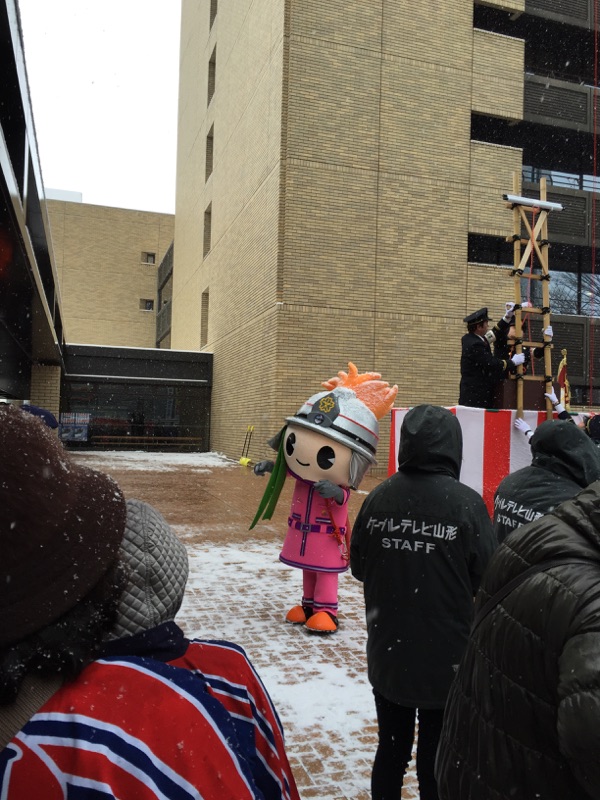 01/18/12:10 雪の中の出初式山形です!昨夜から吹雪いてました。そんな中、消防の出初式!