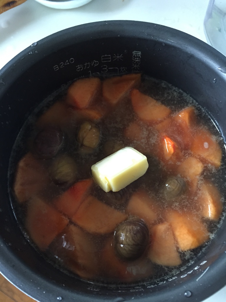 そして栗むいちゃいましたを一袋。仕上げにバターを乗せてスイッチオン!