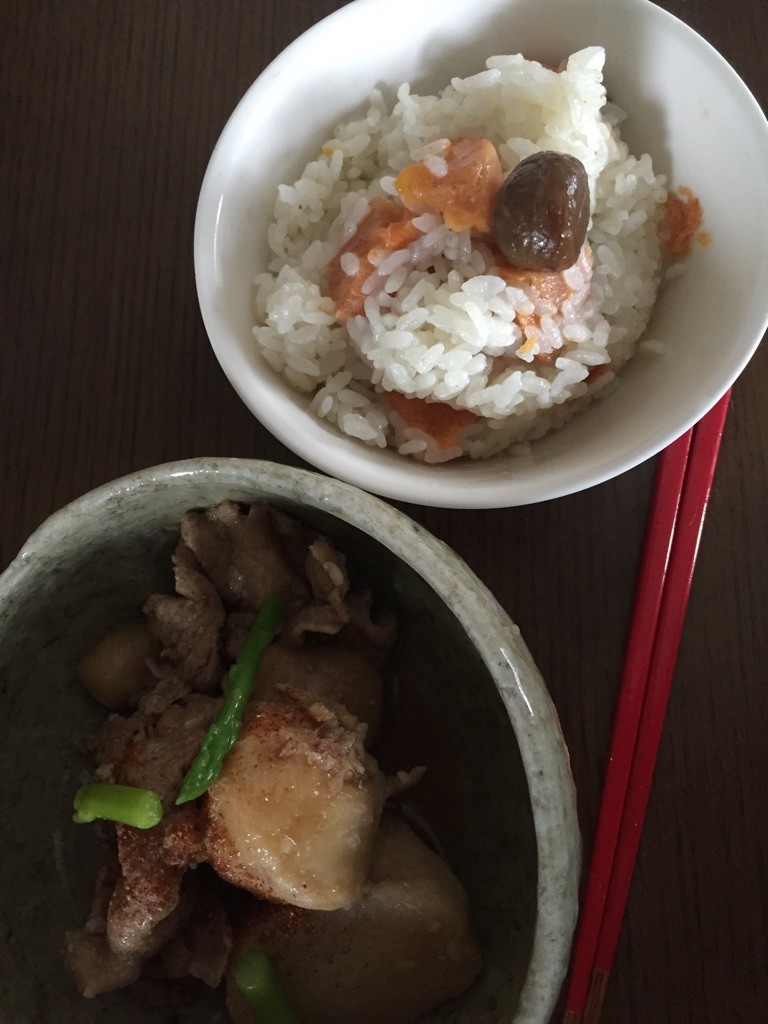 そして木曜日の時枝家、行く秋を偲んで秋ならばの柿栗ご飯!
