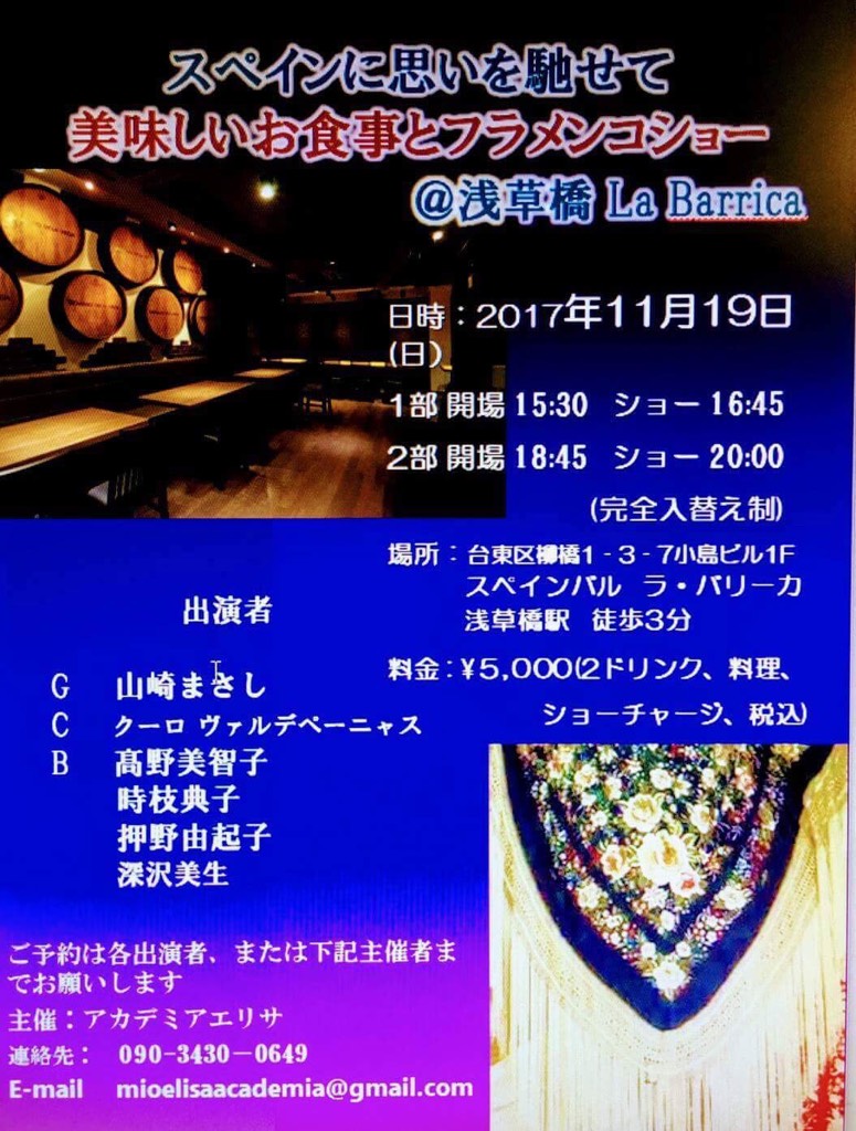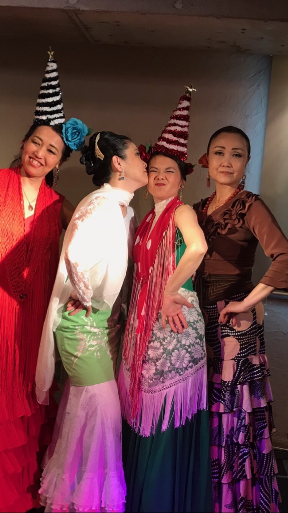 満員御礼で立見の方も多数いらっしゃり、お越し頂いた皆様に感謝です?? 受付の踊り子たちもミニスカサンタやトナカイになり皆さまをお待ちしていました! そちらのほうが華やかで美しかったとの話も????OLE? 私の年内ライブはこれで終了(^◇^) 最後の最後に、と言うかオープニングタンゴで右足タコンで左足親指をがっつり踏んでしまいまして? アドレナリンが出ているうちは良かったのですが。。。 打ち上げの途中から、 あれ?左足親指深爪したっけ? なんか痛くなってきた? すっかり記憶から消してしまっていました、踏んだの? 明日のレッスンはバレーシューズだな??? さて、今夜はガルロチでアデラと共にフラメンコ三昧だーーー! |